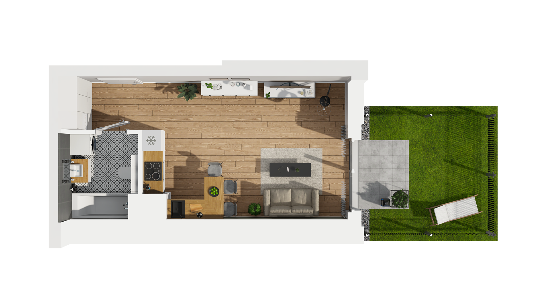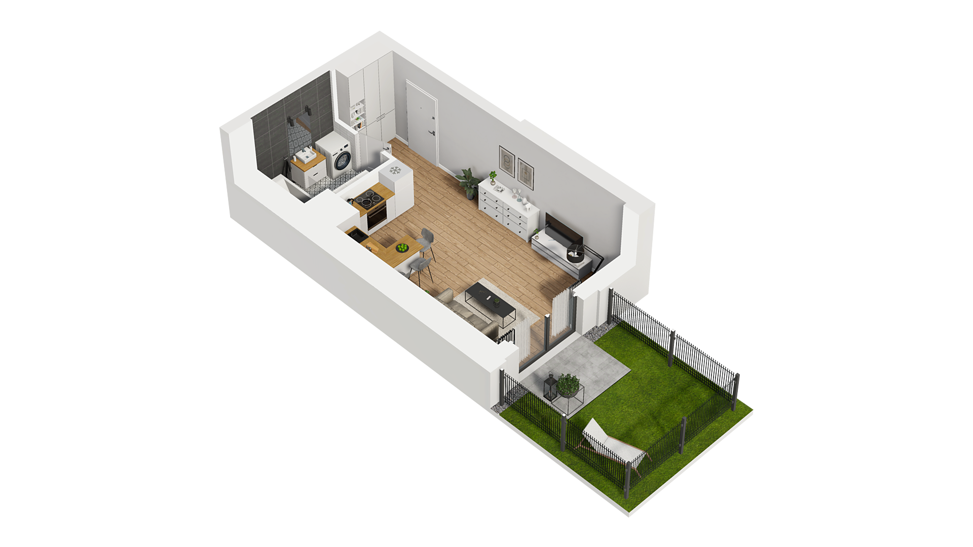 33,42 m2 1 pokój z aneksem 1 Piętro dowiedz się więcej