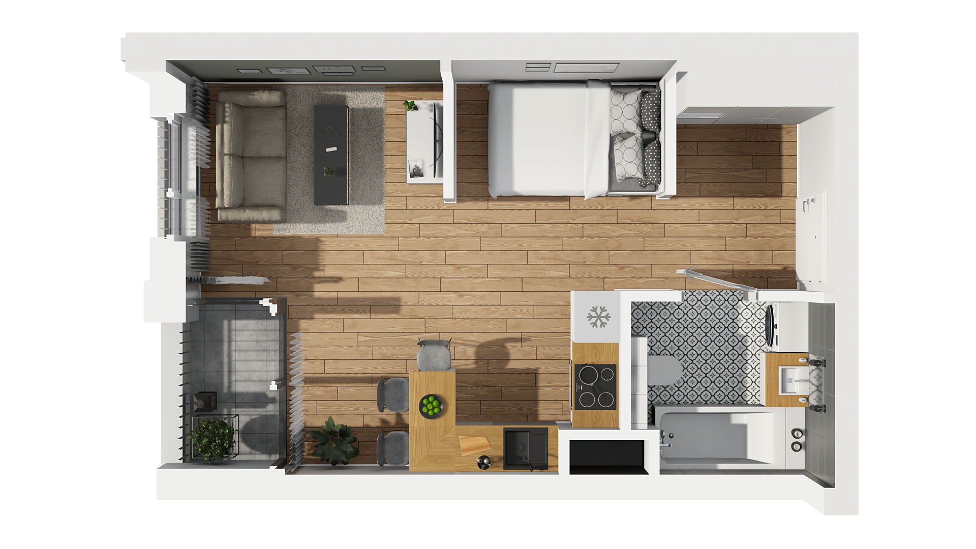 33,79 m2 1 pokój z aneksem 2 Piętro dowiedz się więcej